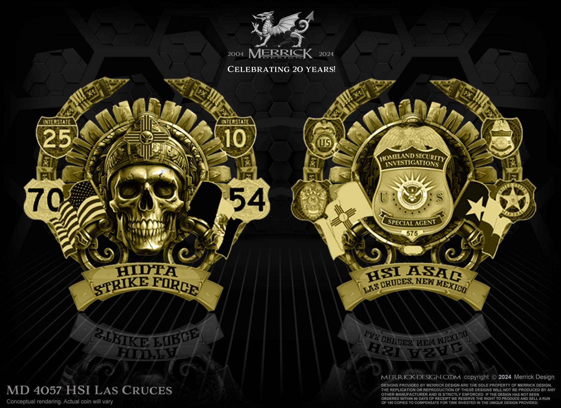 This the 7" version of the HSI Las Cruces coin. These are a PRE-ORDER. Allow 12 weeks for production and shipping.