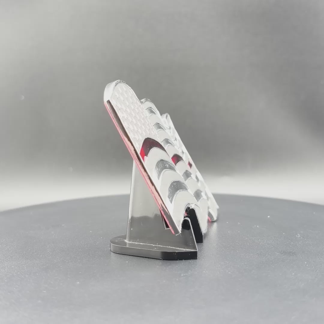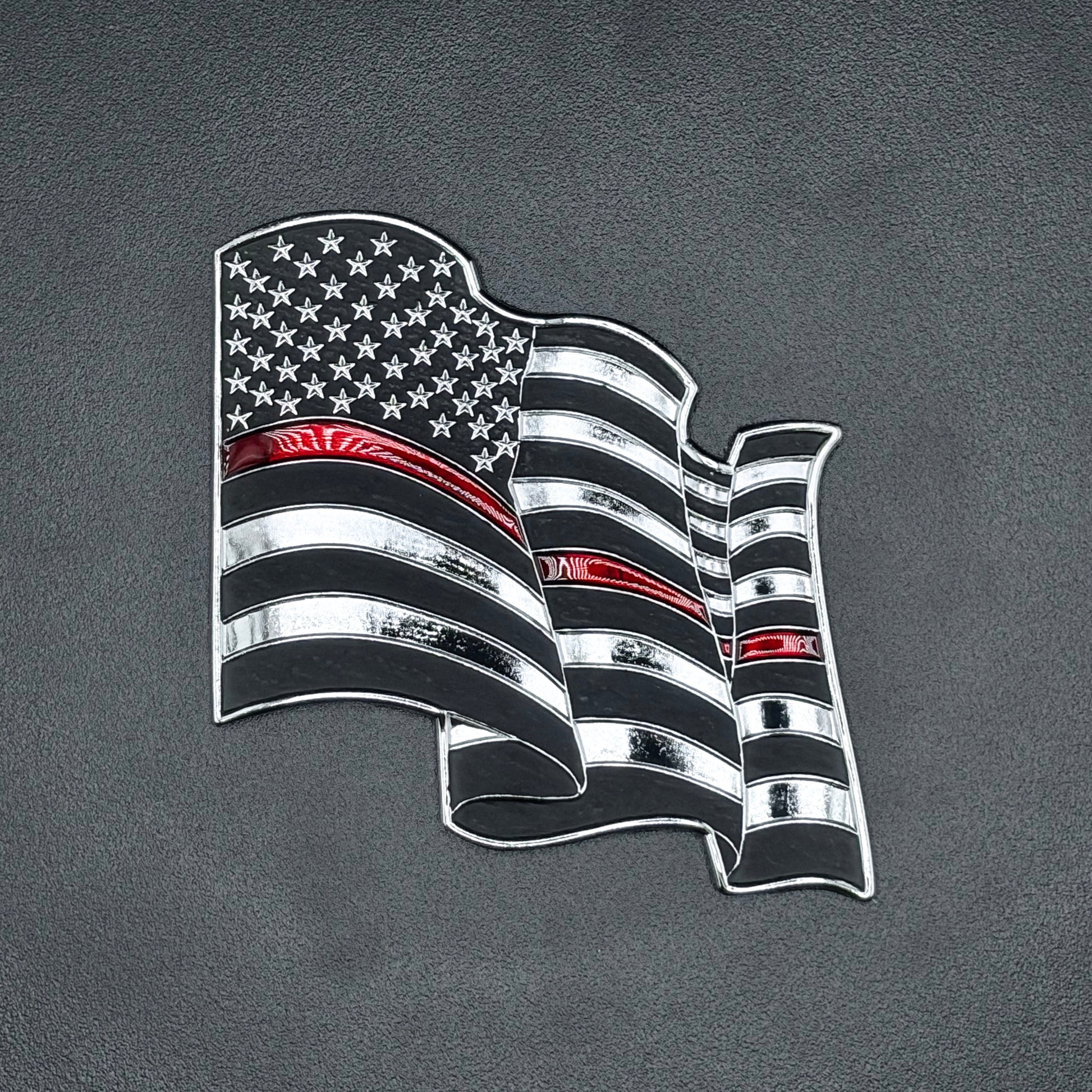 U.S. Furled Flag Metal Auto Decal Thin Red Line | 4" Chrome with Red and Black Enamel