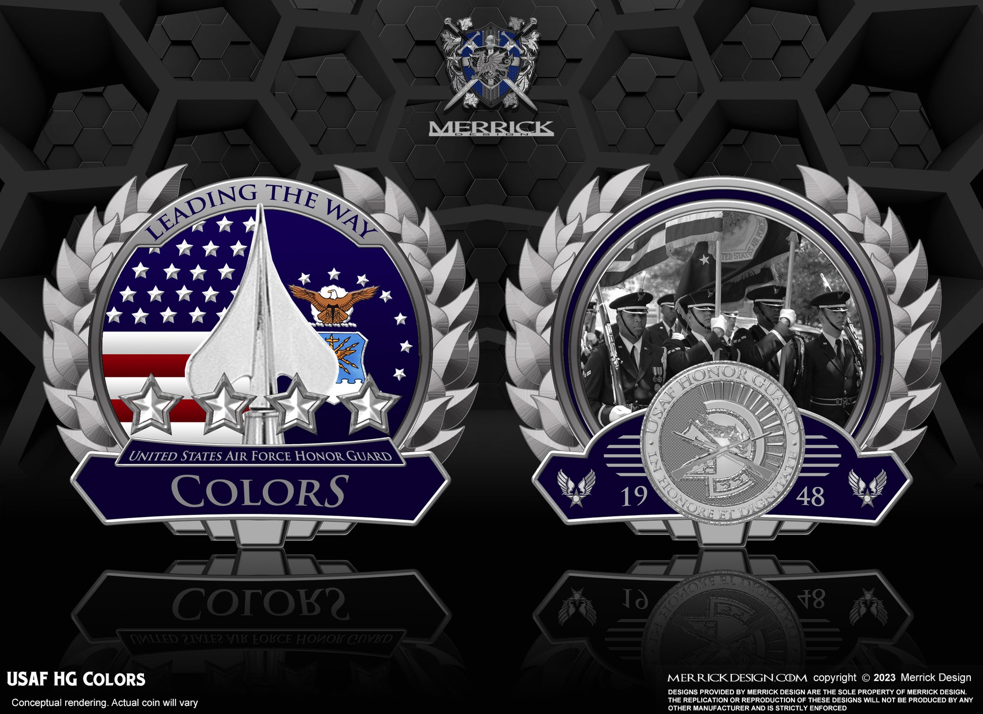 2.5" challenge coin. 3-D details on both sides. Finishing in chrome and antique silver.
